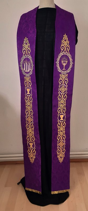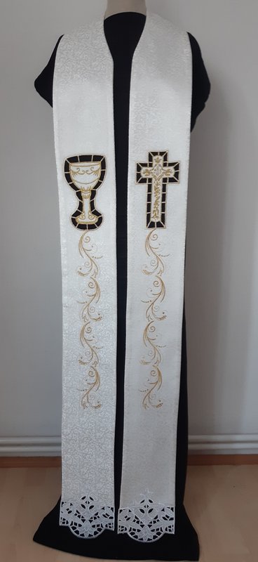 V této záložce jsou ukázky liturgických textilií. Štoly, táhla,ciborium